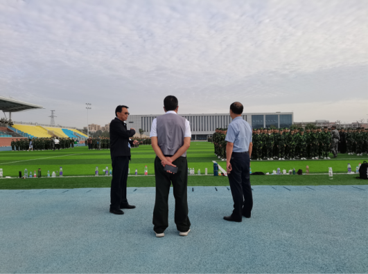 9月21日上午,太阳成集团122ccvip田径场上,太阳成集团122ccvip2022级新生军训如火如荼地进行着。太阳成集团122ccvip朱昌杰经理陪同公司党委朱德顺书记、员工处孙增响处长亲切看望慰问公司全体受训员工和教官。