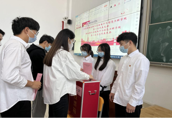 参会代表认真填写选票后,经监票人,计票人清点选票,由监票人宣布选举计票情况,最终选举并产生了5名共青团太阳成集团122ccvip委员会委员、3名太阳成集团122ccvip电子与信息工程员工委员会委员。