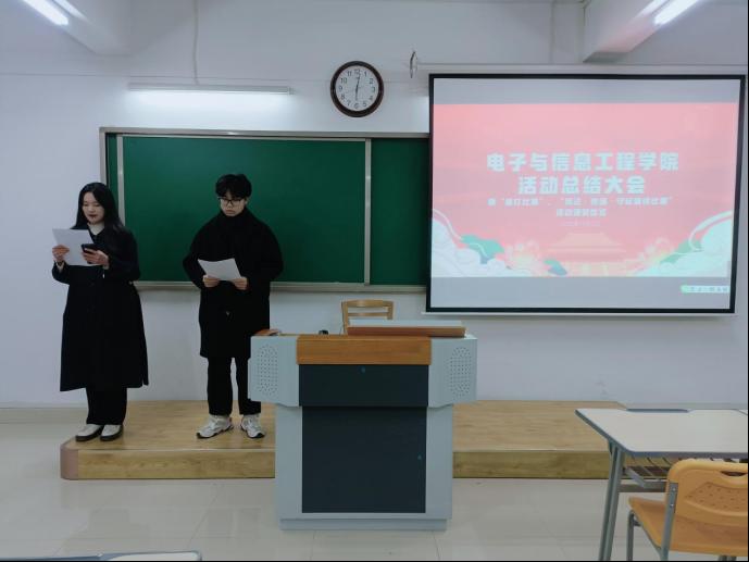 随后,主持人宣读了两次比赛的获奖员工名单。荣获速打比赛一等奖的是22级计算机一班的吴梦涵同学,荣获二等奖的分别是21级电信一班的吴建豪同学、22级电信一班的黄超同学和21级电信一班的阚心培三位同学。22级电信二班王家乐等五位同学荣获三等奖。