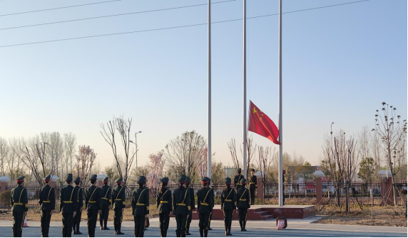 7点10分升旗仪式正式开始,在全体师生的注目礼下,英姿飒爽的护旗手迈着铿锵的步伐,护送着鲜艳的五星红旗来到国旗台前。在初升的太阳映照下,伴随着雄壮嘹亮的国歌响起,五星红旗在晨曦中迎风飘扬在公司的上空。