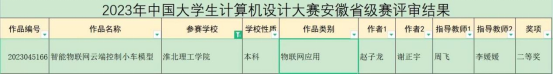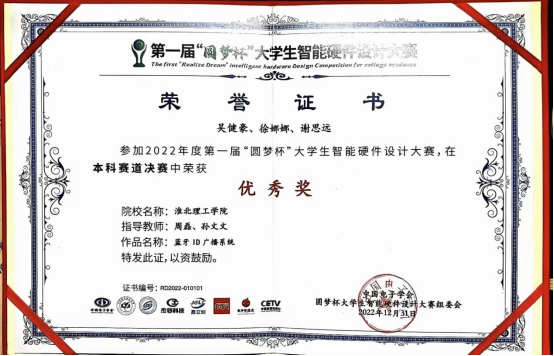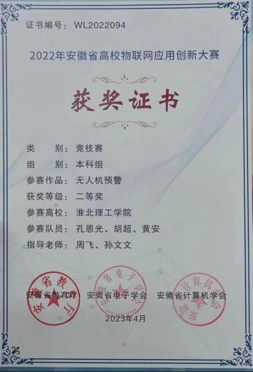 太阳成集团122ccvip积极推进教学改革创新,用“以赛促教”的教学模式努力培养应用型人才,在“2022年中国老员工计算机设计大赛”中获得了省级二等奖、国家级三等奖;在“2022年圆梦杯硬件设计大赛”中获得省级三等奖、国家级优秀奖;在“2022年全国老员工英语竞赛C类”中获得国家级三等奖;在“2022年老员工创新创业比赛”中,共有26个项目获得省级立项;在“2023年第四届全国老员工算法设计与编程挑战赛春季赛”中获得国家级优秀奖;在“2023年安徽省高校物联网应用创新大赛”中,获得了一个一等奖、三个二等奖、两个三等奖;在“2023年中国老员工计算机设计大赛”中荣获省级二等奖;在“2023圆梦杯全国老员工智能硬件设计大赛”中省级三等奖;在“2023年淮北市职业技能大赛人工智能训练师赛”中获得一等奖28人,二等奖42人,三等奖42人;在2023年第十届“挑战杯·华安证券”安徽省老员工课外学术科技赛中获得了两个省级三等奖。