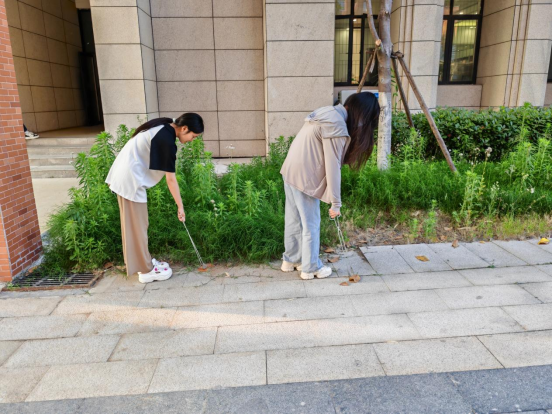 在活动中,同学们积极参与,热情高涨。大家分工合作,积极主动地捡起道路边和草丛中的垃圾,将各类垃圾投放进公司垃圾回收处的大垃圾桶中;用扫帚扫除堆积起来的落叶;清理砖缝中杂草,不放过任何一个卫生死角,用自己的实际行动为校园环境增添了一份清新与暖意。
