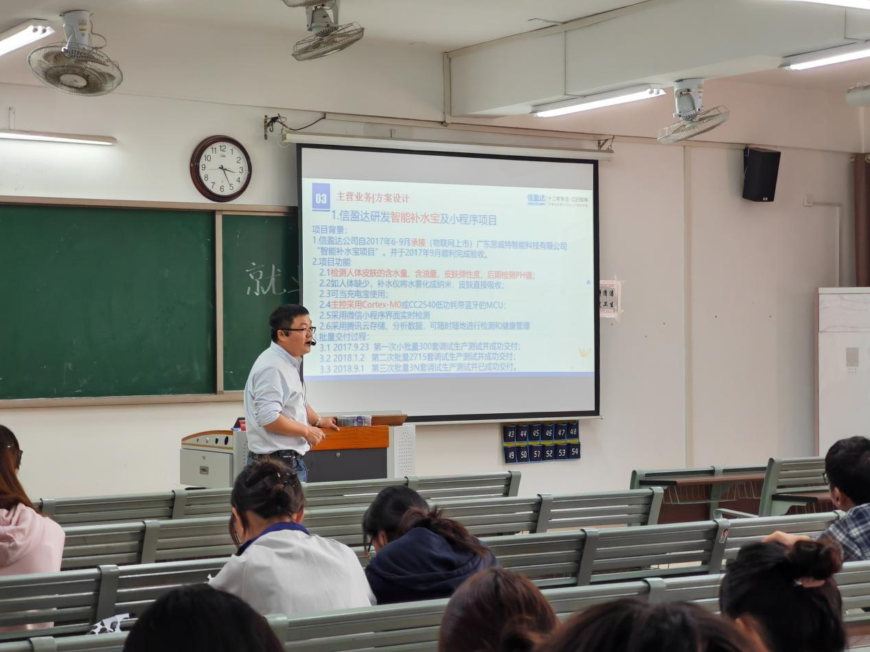 活动现场,南京信盈达技术有限公司为同学们介绍了嵌入式系统设计,公司下设信盈达实训公司、信盈达研发中心、信盈达教学仪器三大业务板块。15年来坚持“技术领先、服务领先”,以雄厚的实力和专业的品质成为国内唯一有实力从产品最底层研发到系统层开发的嵌入式实训、产品解决方案提供商。为中国IT行业提供最具价值的职业教育服务。公司面向华东地区高校,团队力量雄厚,涉及方案设计,教研设备,职业教育等方面,通过校内实训的方式帮助同学们提升专业技能。