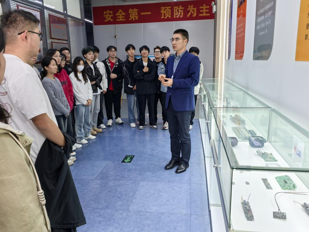 抵达和晶智能科技有限公司后,受到了该厂总经理马总的热情接待。马总不仅对师生们的到来表示热烈欢迎,还亲自陪同参观了整个生产流程,展现了企业对人才培养的高度重视和社会责任感。