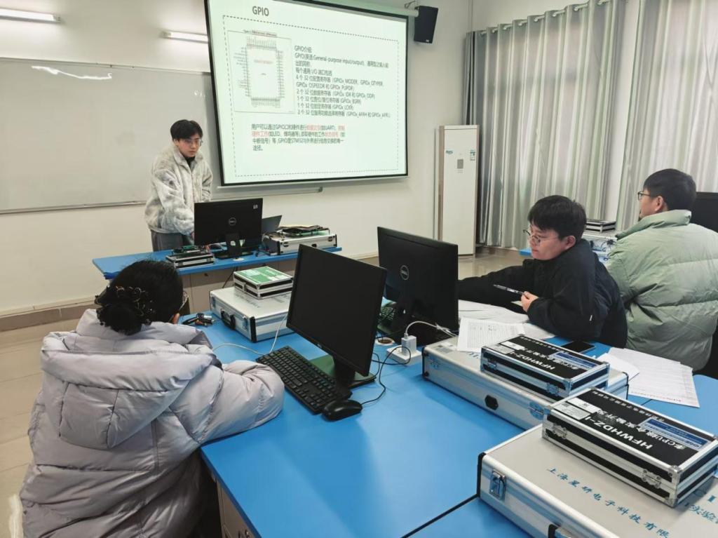 技术展示方面,员工们深入探索了STM32微控制器的应用,包括GPIO模块配置、KEIL环境下工程开发、STM32寄存器使用等,并通过实例演示了按键控制设备操作等技巧。此外,还展示了串口通信等技术,体现了员工在嵌入式系统开发领域的专业素养。