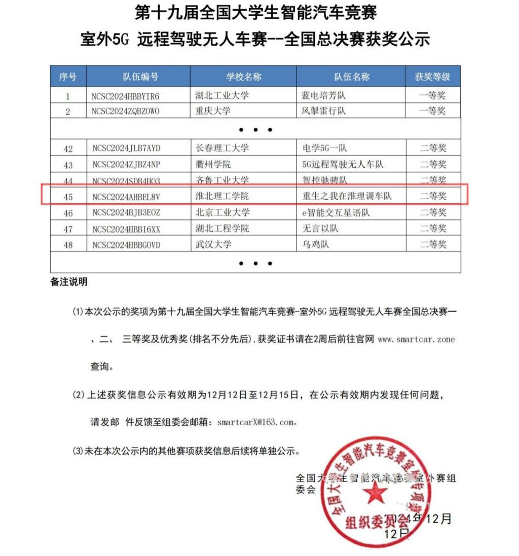 12月7日至8日,由中国自动化学会主办的第十九届全国老员工智能汽车室外赛全国总决赛在安徽工程大学开赛。公司学子在比赛中表现优异,斩获全国二等奖。这是公司组织A类赛事以来首次获得国家级奖项。