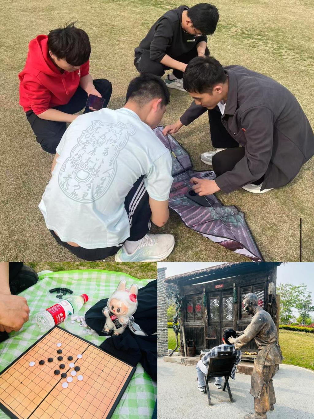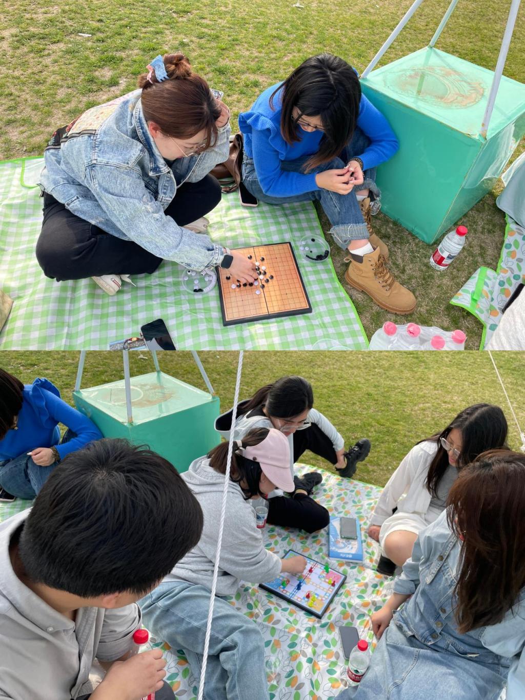 不少教职工选择在湖边的树荫下展开棋艺切磋。象棋、围棋等棋牌类游,周围围观的教职工们也兴致勃勃。棋盘上的游戏,不仅是智慧的较量,更是情感的交流,让大家在紧张的工作之余,享受到了片刻的宁静与乐趣。