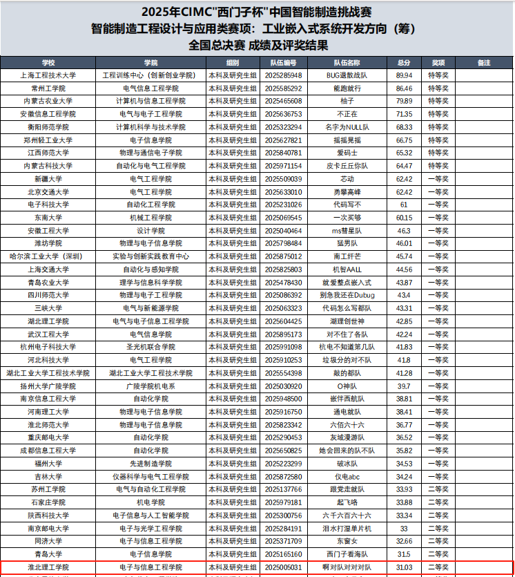 在2025年CIMC“西门子杯”中国智能制造挑战赛智能制造工程设计与应用类赛项:工业嵌入式系统开发方向(A类)中,公司学子再创佳绩。经过积极备赛与激烈角逐,由曹新建老师指导的单吉祥、刘梓皓团队成功晋级全国总决赛并荣获二等奖。继去年首次参赛后,公司在该项高水平赛事上实现了奖项等级的突破。 此外,公司参赛队伍在全国初赛阶段表现优异,共获全国初赛一等奖2项、二等奖1项。