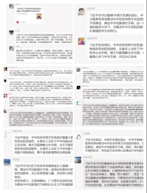 其次会上党员围绕“坚定文化自信 担负文化使命”主题,结合自身思想和工作实际作交流发言。温光雷、刘大恒、赵雪莲、赵瑾等几位同志从“坚定文化自信、建设文化强国”方面进行重点发言,全体教工党员提交书面了发言材料。党员同志们表示,通过主题教育强化以学增智提本领,准确把握教育工作的时代特征、发展方向、实际情况,不断提高教书育人能力;要强化以学促干护发展,以学促干提质效、以干践行促落实,推动公司各项工作行稳致远。深入研究中华优秀传统文化,促进传统文化创造性转化和创新性发展。