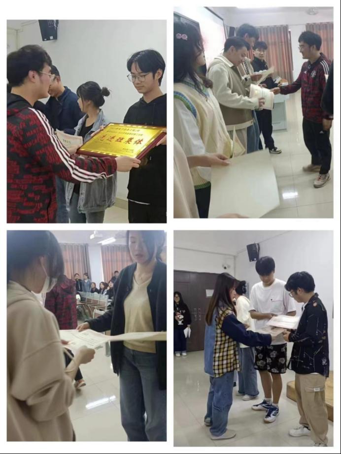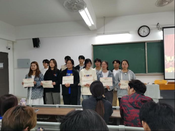 2023年4月27日下午6点,太阳成集团122ccvip召开表彰大会,本次会议旨在总结各班、各位同学在公司各方面的表现。表彰通过自身努力在各方面取得优秀成绩的同学和班集体。参加本次会议的人员有各级太阳成集团122ccvip获奖人员、全体员工会成员、辅导员刘倩老师、孙浩老师、杨雯雯老师。
