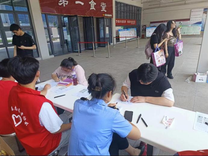 上午9点,献血活动正式开始,志愿献血的同学们陆续到来。老员工志愿者们询问他们的身体情况,指导符合献血要求的献血者进行线上扫码登记,并填写无偿献血志愿申请表。随后志愿者对献血者进行血压、脉搏的测量,以确保献血者自身的安全。献血前的准备事项全部完成后,献血者登上献血车,在医护人员的帮助下,完成献血。