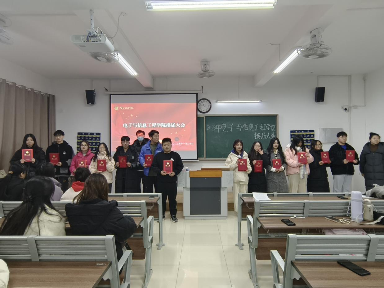 最后,电信公司辅导员杨雯雯老师、孙浩老师为上一届圆满完成工作的部长颁发聘书。老师们表示了对上一届员工会工作的肯定和对下一届员工会同学的勉励,希望同学们能秉承员工会全心全意为同学服务的宗旨扎实工作,用行动来证明自己的能力,来为公司添彩。