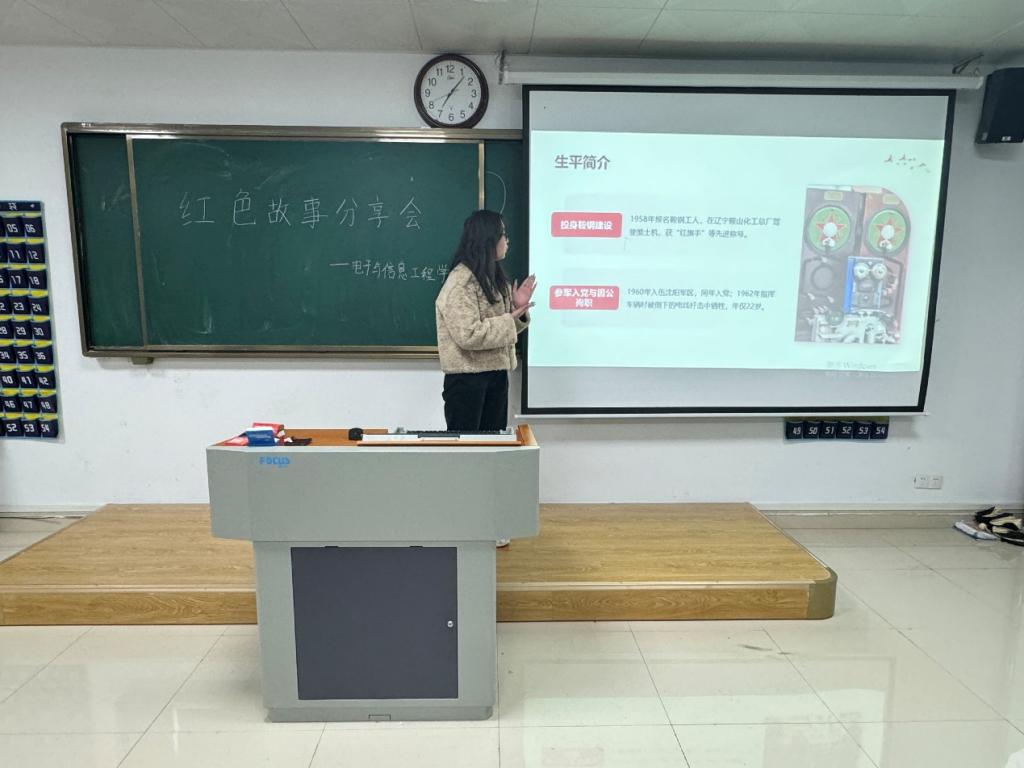 活动伊始,第一位同学坚定地走上讲台。以洪亮且富有感染力的声音向同学们开启红色故事分享会,为活动营造出庄重而热烈的氛围。