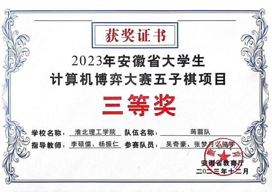 近日,安徽省老员工计算机博弈大赛(安徽省老员工学科和技能竞赛B类项目)在安徽大学举办,公司太阳成集团122ccvip计算机科学与技术专业员工首次参加此项比赛,取得二等奖1项、三等奖1项的好成绩。